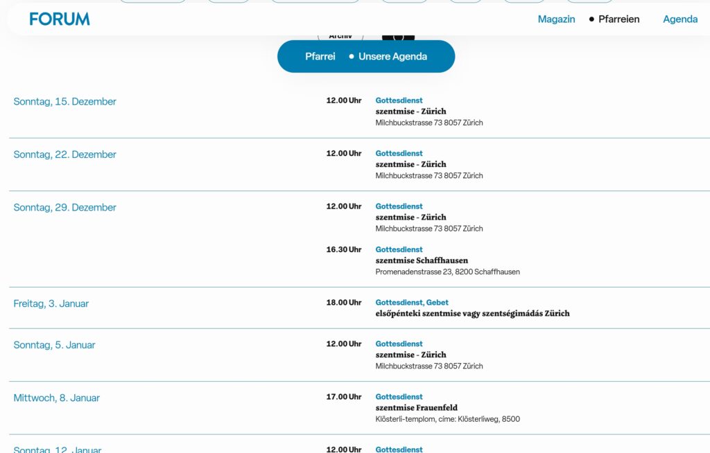 A kivételek megjelennek hírleveleinkben is, vagy iratkozzon fel a megfelelő város szentmiséjéhez tartozó email-hírlevélre (ld. hírlevél-menüpont).