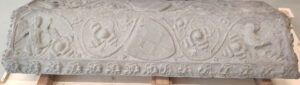 A kőszarkofágot 1337-ben állították fel a kolostor kórusában, mint egy a föld felszíne fölé emelt kőkoporsót. A sírfedélbe a négy evangélista jelképét vésték, és Magyarország két címerpajzsát. Száz évvel később még a koporsó a főoltár mellett állt, azonban a következő száz év elteltével a síremlék nem élte túl a reformációt és felszámolták. Egyedül az ív alakú fedél maradt meg, mely 1850-ig maradt a templomban.1898-ban a svájci Landesmuseum részére átadták.