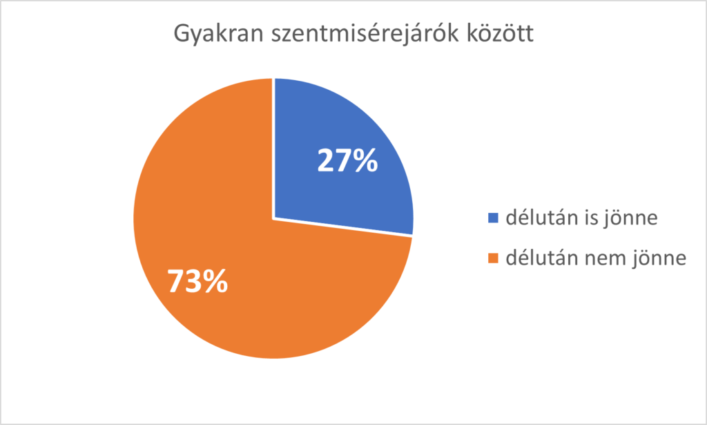 41 válasz érkezett, de 66 fő véleménye volt. A mostanában templomba járók közül sokan kitöltötték, de ha az itteni magyar hívőket tágabb értelemben nézzük, akkor ez mindenképpen kevés, figyelembe véve, hogy